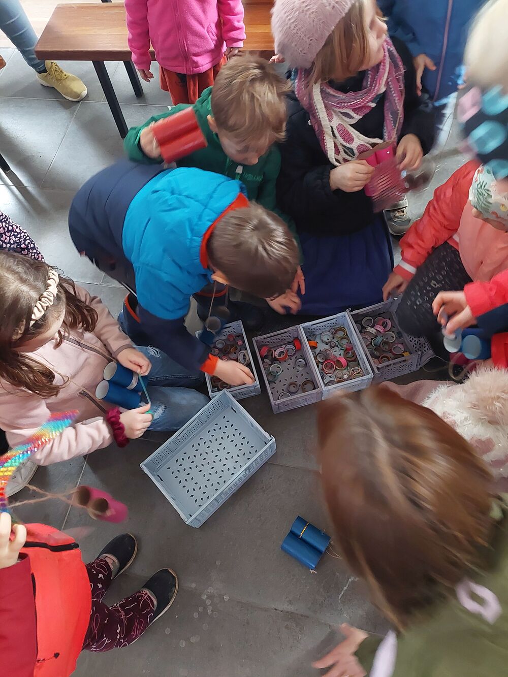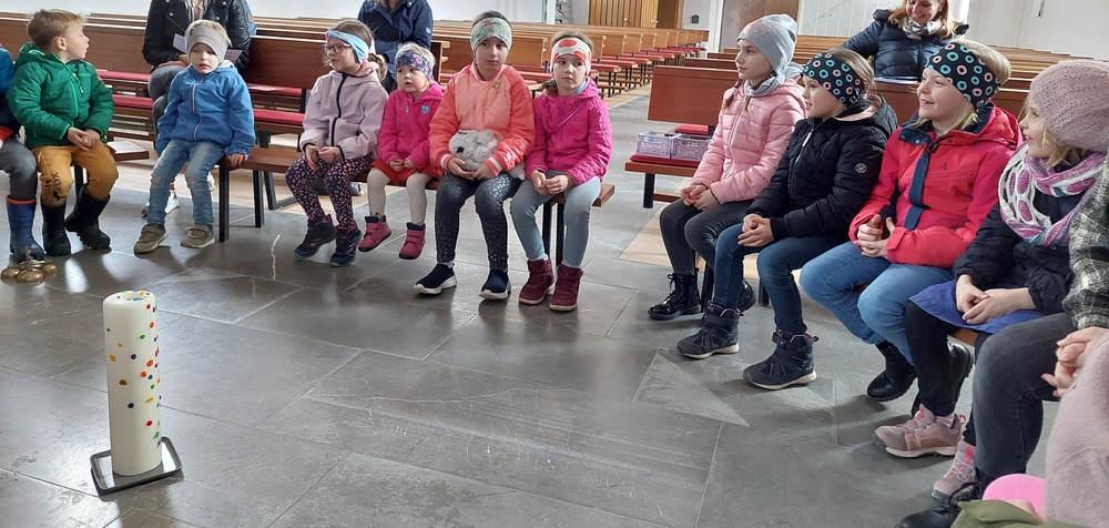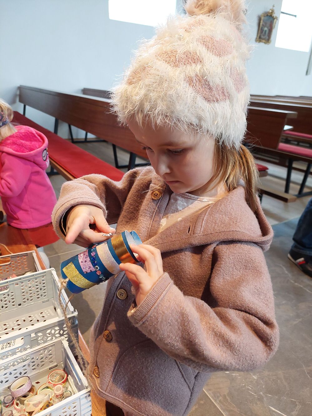 Ein Blick durch das selbstgebastelte Fernrohr und dann ging es los auf Entdeckungstour durch die Kirche. In Gruppen besuchten die Kinder die verschiedensten Stationen. Die Sakristei wurde von Dietmar Hirschbühl erklärt, Pfarrer Ratz ließ die Augen beim neuen Taufbecken, der Osterkerze sowie dem Altar strahlen. Sandra stimmte mit den Kindern die Orgel an und mit Anna wurden bei den Opferkerzen Wünsche zu Gott gesendet und den Beichtstuhl begutachtet.  Zum Abschluss durften die Erstkommunionskinder noch den Kirchturm erklimmen.